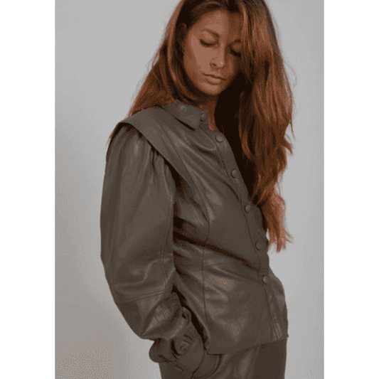 Coster Copenhagen Ladies Leather Shirt - Dark Shade Grey