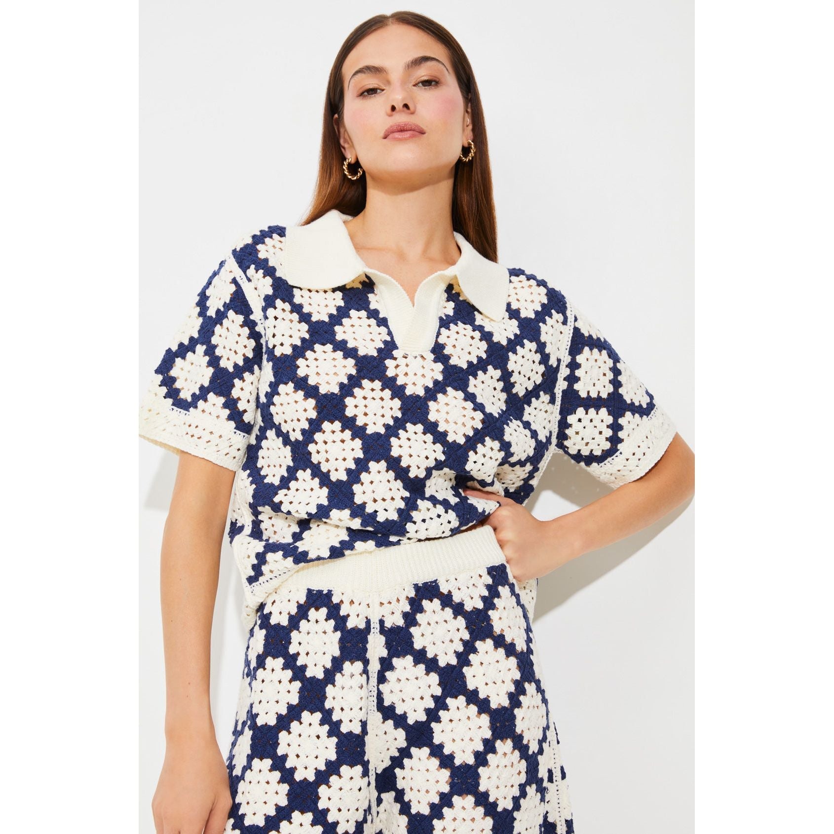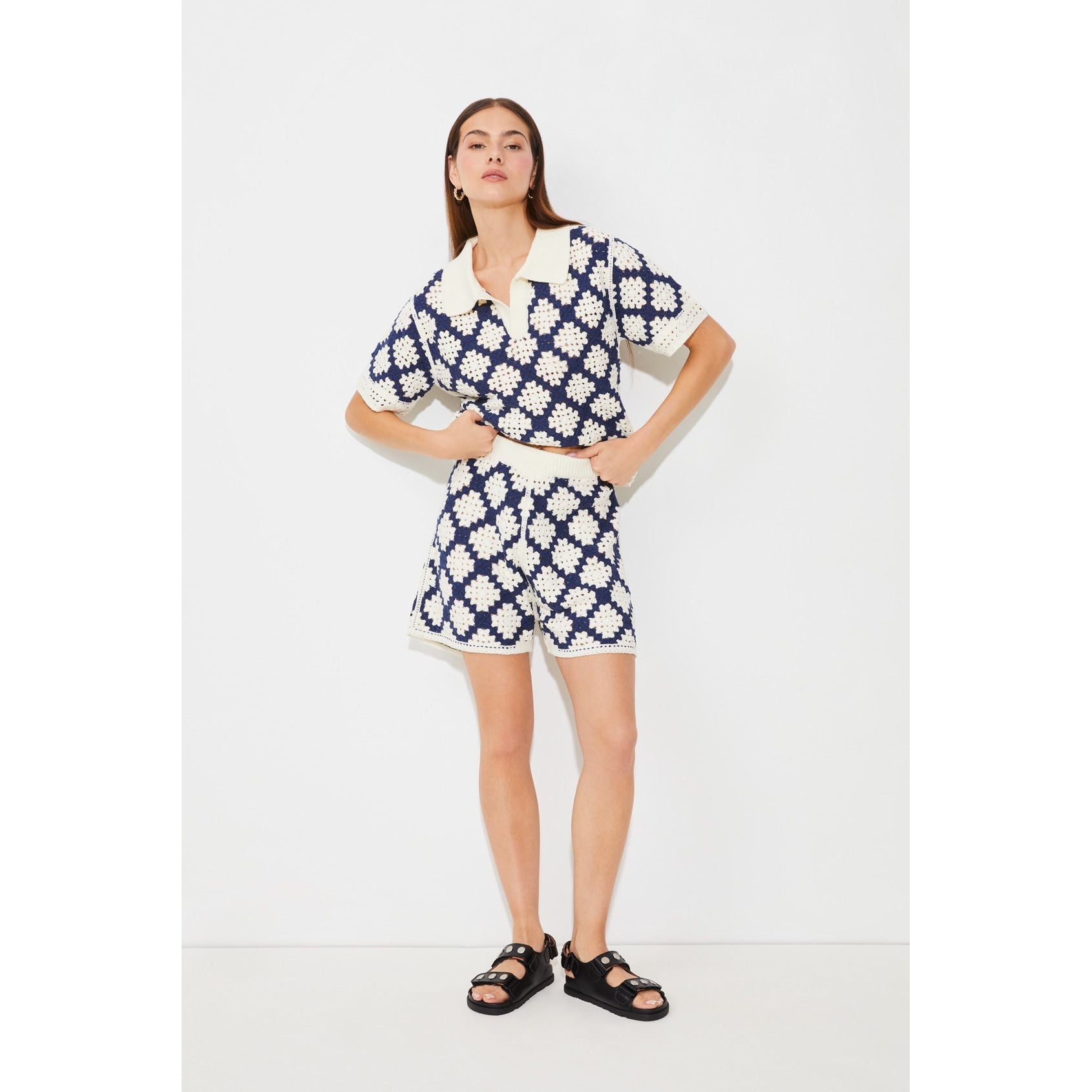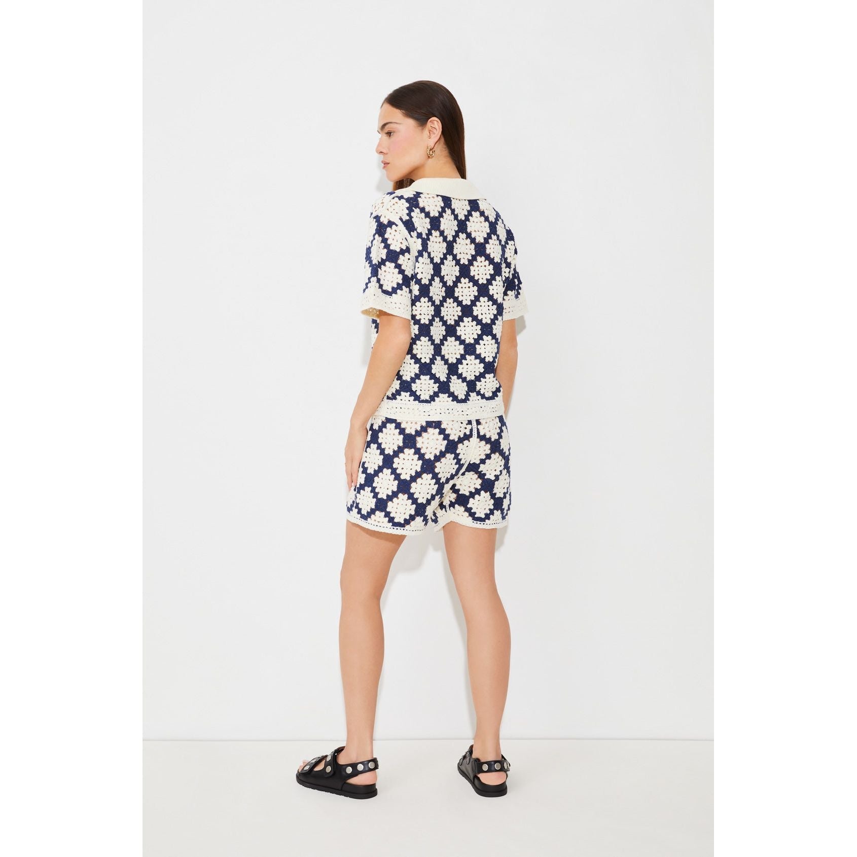Suncoo Ladies Byzance Knitted Shorts - Blue & Cream