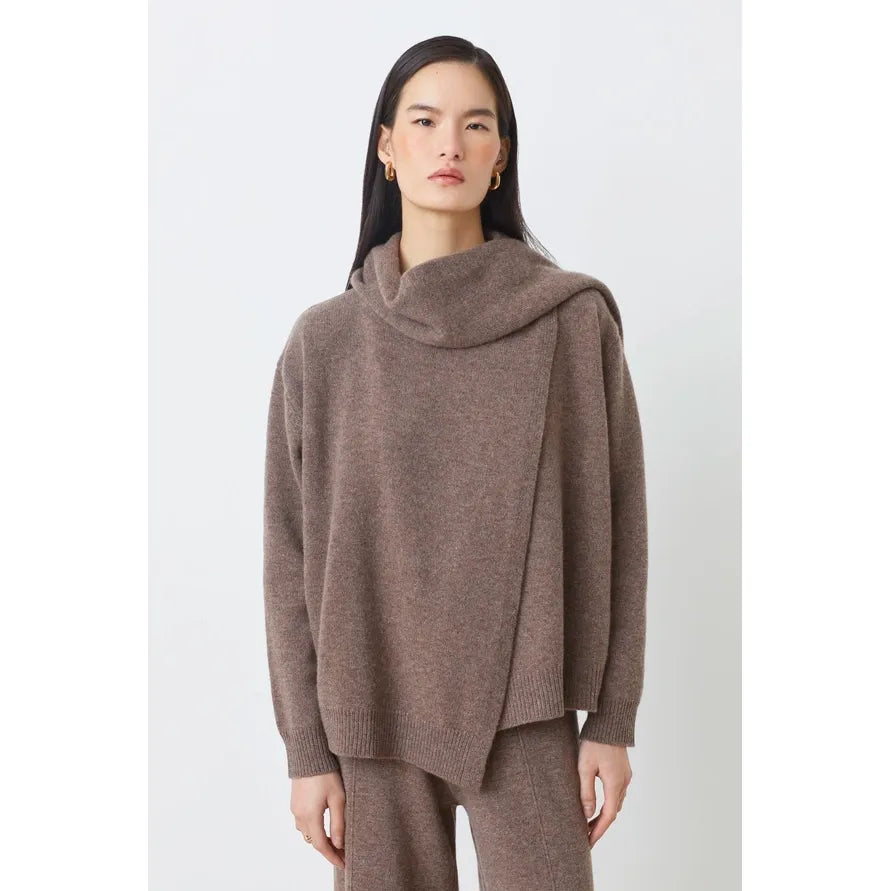 -Asymmetrical wool jumper with collar detail